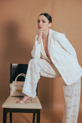 La CarrieBorsa a Spalla La Carrie Woven Beige – Eleganza Intrecciata e Finitura Glossy